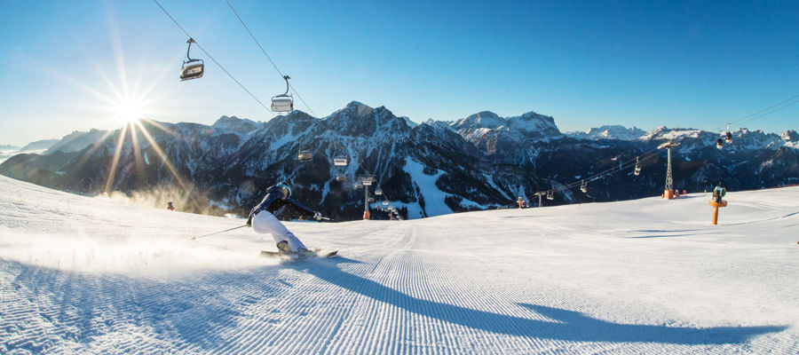 The sunny skiing area with view over the Dolomites is the perfect place for winter holidays with the whole family.