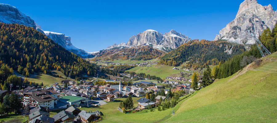 Autostrada A22, zjazd Bressanone/Val Sebato, kierunek Val Sebato, droga krajowa (SS 49) do San Lorenzo di Sebato, skrzyżowanie Val Badia/Val Badia (droga krajowa SS 244), La Valle/Wengen.