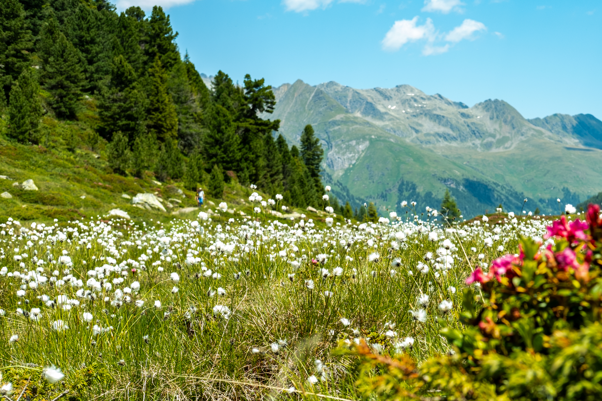 Trasa prowadzi dalej przez spektakularne północne stoki Piz da Peres po stosunkowo dobrych ścieżkach, które mogą być nieco trudne tylko w przypadku opadów śniegu lub deszczu. Po około 1,5 godziny dociera się do trawiastego grzbietu Piz da Peres, a zaraz potem do krzyża na szczycie. Widok na góry Parku Przyrody Fanes-Senes-Braies jest wspaniały. Z kolei w kierunku północnym w pogodny dzień można rozpoznać prawie wszystkie szczyty Alp Zillertalskich i Tauern, a także Valle Aurina. Wspaniale!