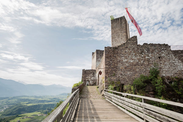 Trasa prowadzi dalej przez tunel (nie zapomnij o światłach) i dalej do zamku Enn. Po krótkim odpoczynku z widokiem na zamek, rowerzyści jadą wzdłuż drogi Dolomitów do stacji kolejowej w Kalditsch, gdzie wycieczka jest kontynuowana wzdłuż starej linii kolejowej. W gospodarstwie Pichlerhof rowerzyści skręcają w lewo do sadów, pedałują do kaplicy, a stamtąd jadą w prawo, aż w końcu docierają do stacji kolejowej w Kaltenbrunn. Stamtąd trasa prowadzi przez Gschnon i w kierunku Montagna do szlaku nr 3, który zabierze rowerzystów z powrotem do punktu startowego w Egna.